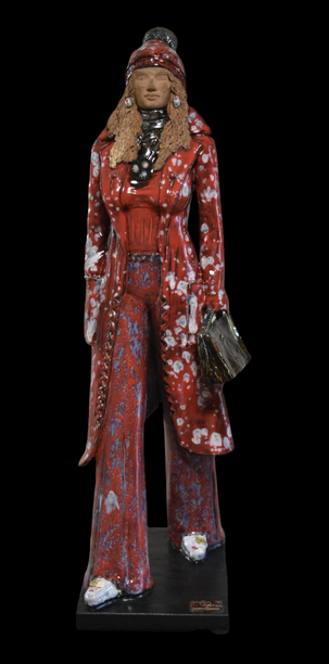 Ses sculptures racontent des présences plus que des histoires : regards tournés vers l’horizon, silhouettes élancées, attitudes calmes mais puissantes.