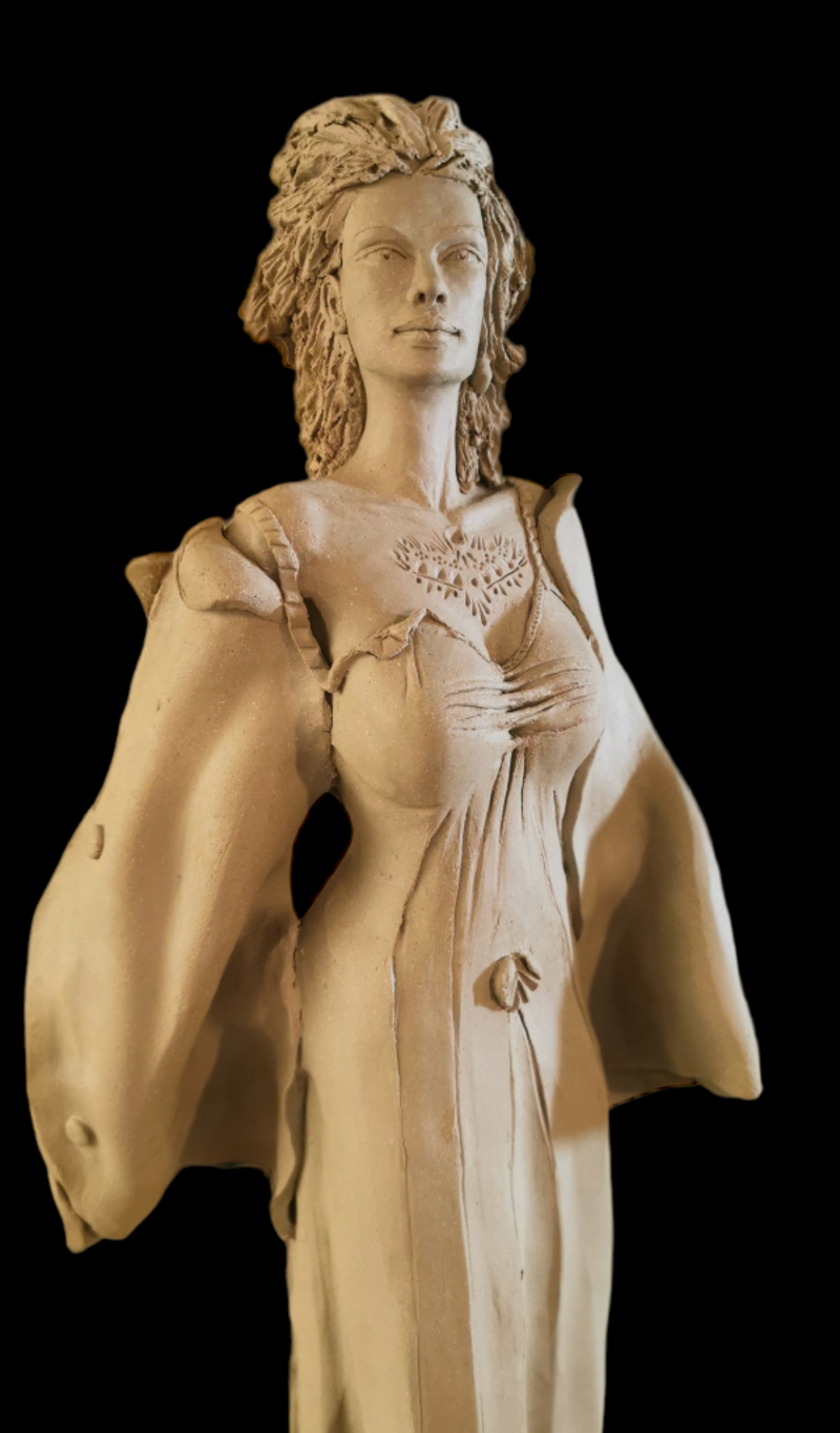 Modelage visage Le Samouraï , grès roux Samouraï, séchage Une élégante